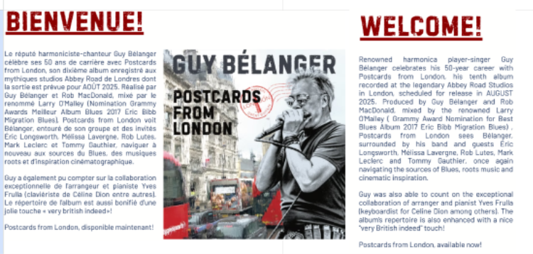 The Dunany Country Club invites you to a special musical performance with Guy Bélanger on September 25.
